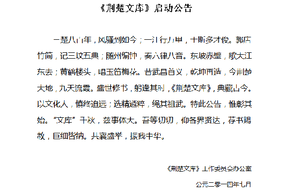 • 《荊楚文庫》啟動公告